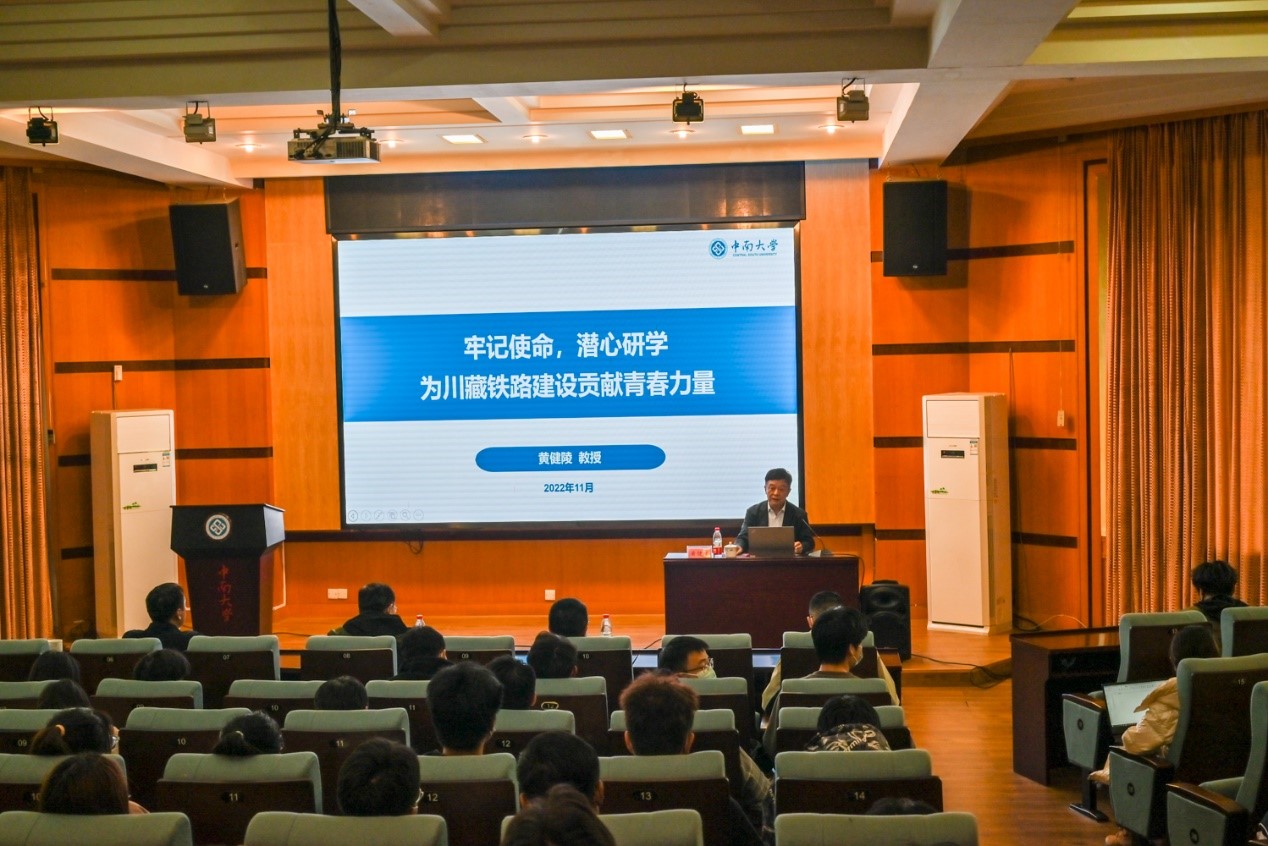 11月25日下午15:00,校党委副书记黄健陵教授于铁道校区世纪楼C201报告厅为交通院和公管院学生讲授了题为“牢记使命,潜心研学——为川藏铁路建设贡献青春力量”的思政课。公管院党委副书记耿贵斌、副院长姜国俊,交通...