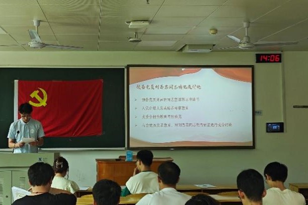 会议伊始,王羽珊同志简单介绍了会议流程及汇报要求。随后,刘昌岩、吴川、孟令晨、王羿尧、吴雨曦、王浩远六位预备党员依次上台宣读转正申请书。六位同志按照要求,对预备期一年内自己的理论学习、思想转变、学习生活、支部工作等方面进行汇报,表明了为党的事业奋斗终身的决心。