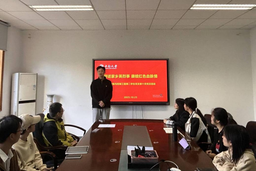 2025年10月23日,交通设备与控制工程第二学生党支部在交通楼322举行“讲述家乡英烈事,赓续红色血脉情”主题党日活动,活动由郑苑同志主持,支部全体党员参加。