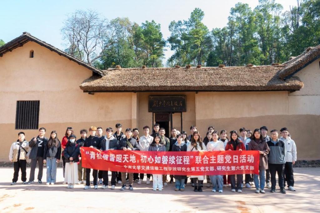 8:20,全体党员在铁道图书馆前坪集合完毕,整装待发。8:30,党员们乘坐大巴车前往湖南省宁乡市花明楼学习刘少奇同志生平事迹。