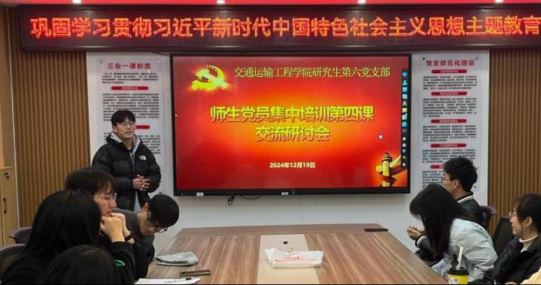 12月19日晚,研究生第六党支部在第一综合楼530教室举行师生党员集中培训学习研讨会暨专题学习讨论会,会议由支部书记陈灏主持。