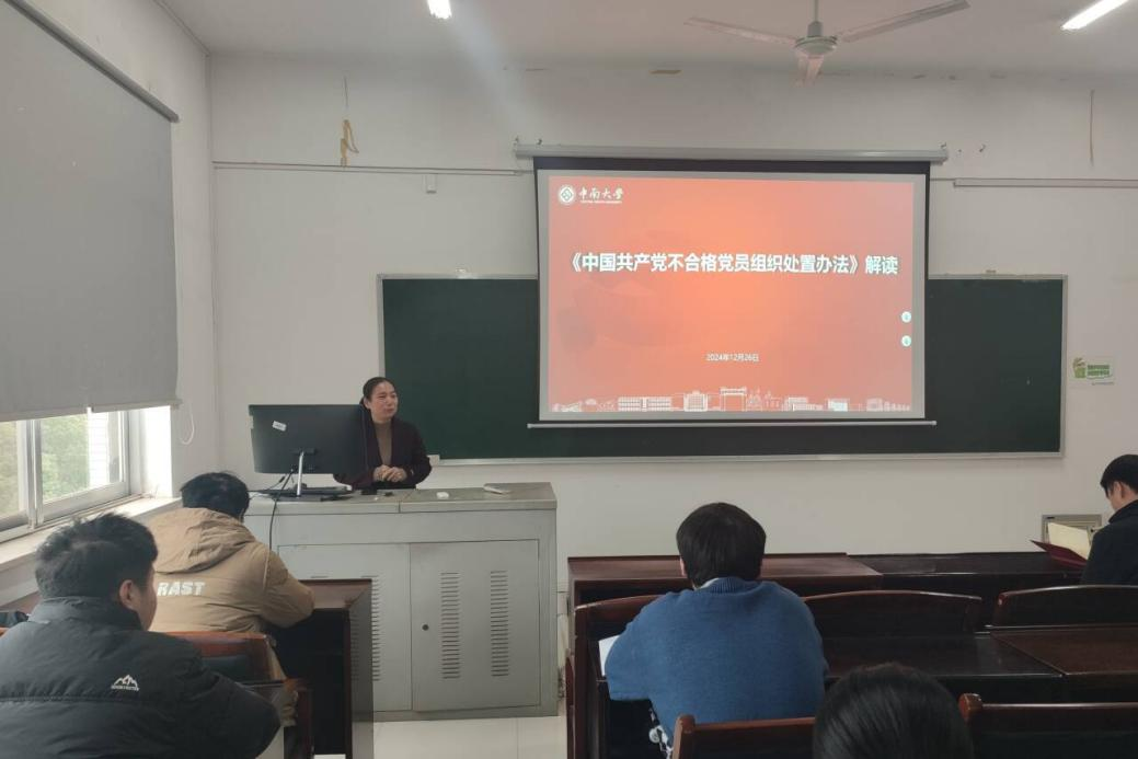 博士生第四党支部在交通楼515开展党课教育活动。此次党课邀请到韩锟副院长作为主讲老师,为全体党员深入浅出地讲解了《中国共产党不合格党员组织处置办法》(下简称《办法》)。