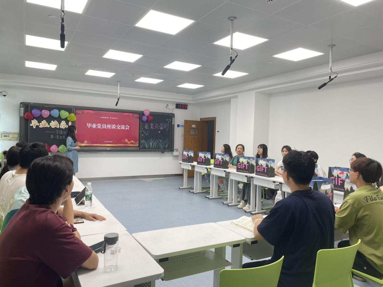 6月8日下午14:00,交通运输第一学生党支部在世纪楼主楼303举行毕业班党员座谈交流会。本次会议由徐佳美同志主持,支部全体党员及发展对象参加。
