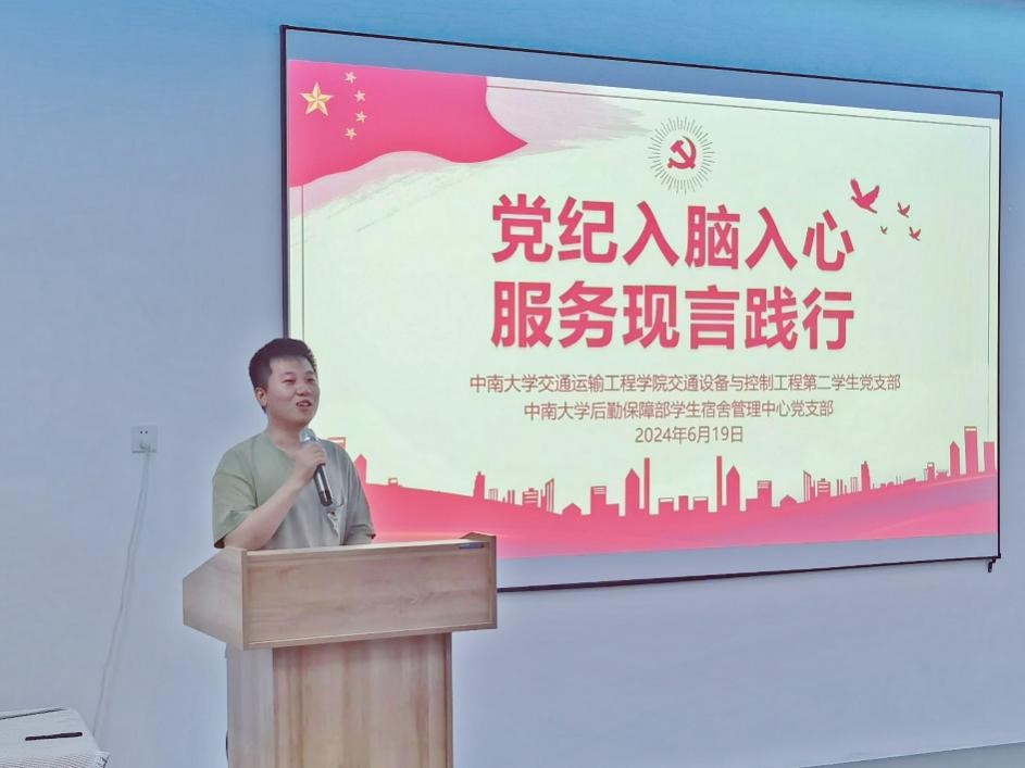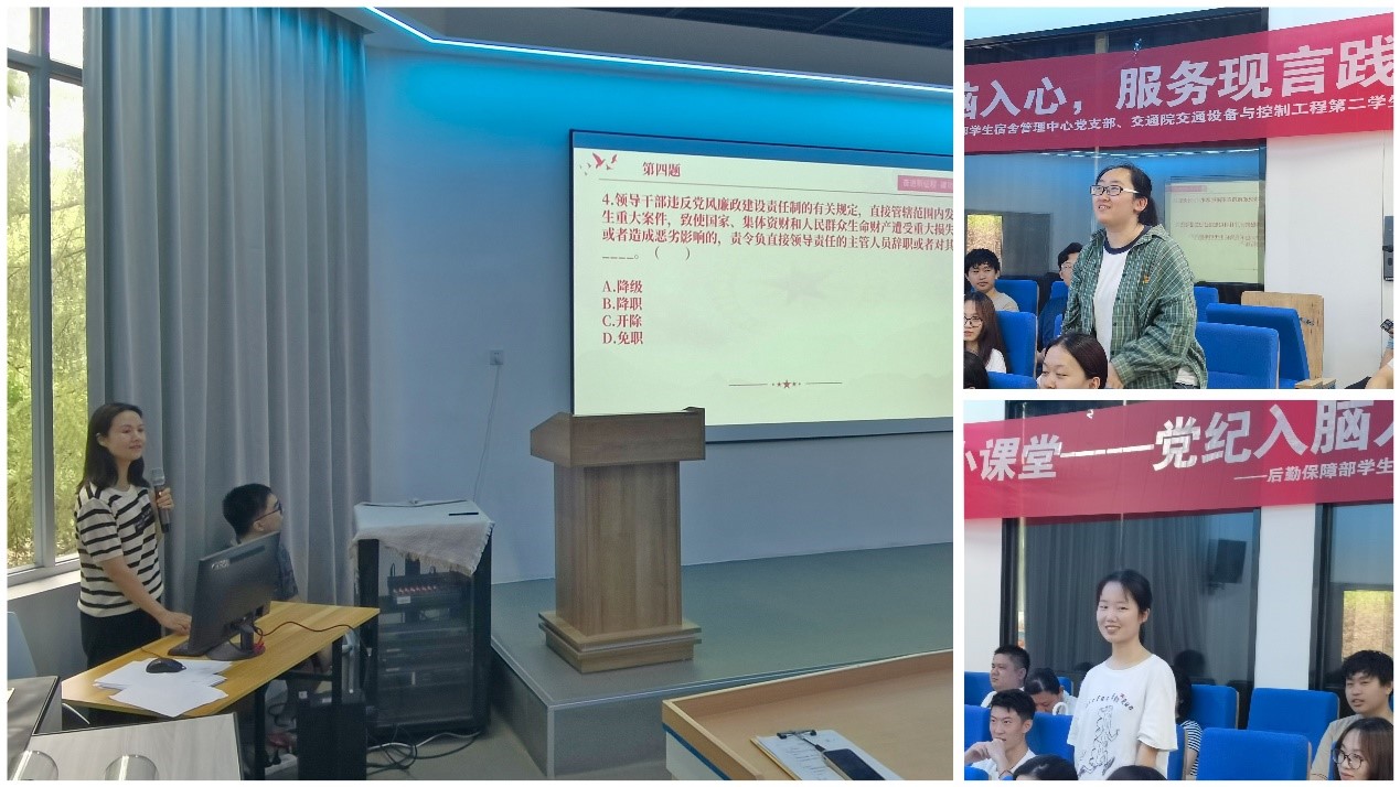 交通设备与控制工程第二学生党支部、后勤保障部学生宿舍管理中心党支部在铁道校区共同举办“党纪入脑入心,服务现言践行”主题实践活动,本次活动由交通设备与控制工程第二学生党支部张健书记主持,两支部全体党员同志参加。