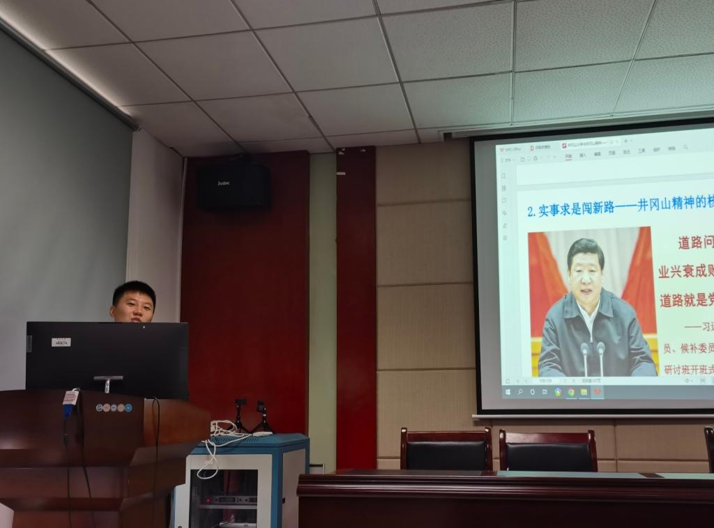 大会伊始,支部书记张健同志为全体党员讲授了以“井冈山精神”为主题的党课。党课从新中国成立以来,国家领导人关于井冈山精神的重要讲话出发,逐渐深入到井冈山革命根据地的创建历史、井冈山精神的解读及时代价值。党课激励支部同志们坚定理想信念,从历史中获取知识、吸取经验、汲取力量,在面对未来前方的艰难险阻时敢于迎难而上,笃行不怠,用担当奉献谱写新时代的青春篇章。