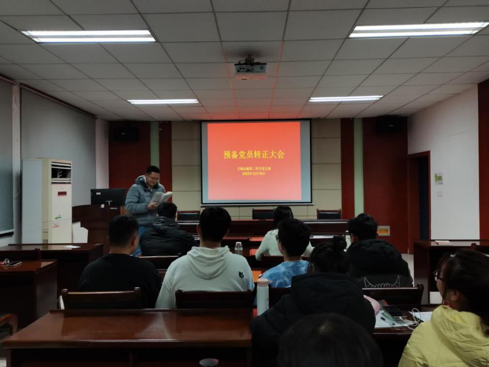12月16日19:00,交通运输第二学生党支部在交通楼513举行了预备党员转正大会。本次会议由支部书记丁德孝同志主持,会议主要讨论了李若愚、王明灿、郭翼成、周茂珍四位预备党员同志转正的相关事宜。