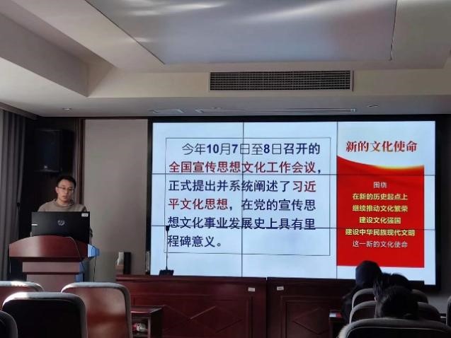 本次党课的主题为“学习领会习近平文化思想”。周少宇同志从学习习近平文化思想的重要意义、习近平文化思想的基本内涵、文化建设规律认识的新高度三个方面开展授课。