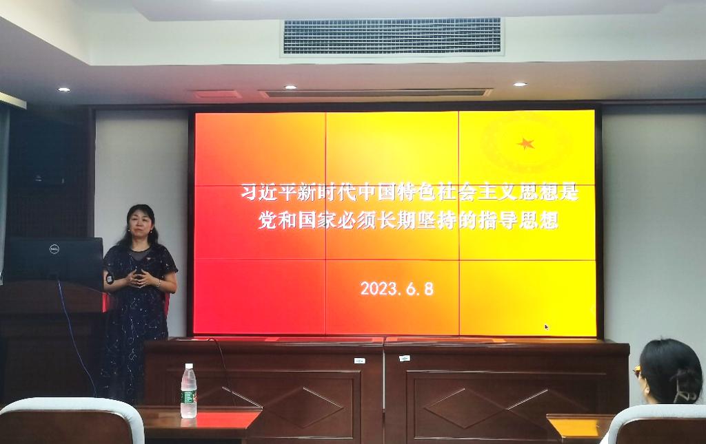会议伊始,朱创宇同志就此次主题党课开展的必要性与重要性进行简要阐述。随后,叶峻青老师以“习近平新时代中国特色社会主义思想是党和国家必须长期坚持的指导思想”为题展开授课。叶老师以开展主题教育的缘由引入,从“立足时代之基、回答时代之问的科学理论”“系统完备的科学体系、特色鲜明的理论品格”“经过实践检验、富有实践伟力的强大武器”“21世纪马克思主义、当代中国马克思主义”四个方面进行详细讲解,引发了同志们对习近平新时代中国特色社会主义思想的形成过程及核心内容的思考。