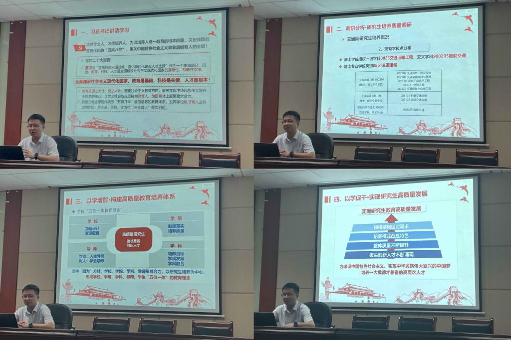 副院长彭勇老师讲授,主题为“以学增智,以学促干——高质量研究生培养与思考”,支部全体党员同志参与学习。