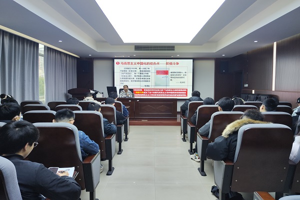 随后韩老师重点讲述了党史发展中的关键历史转折及其基本线索。在马克思主义中国化的过程中,毛泽东思想的创立实现了第一次历史性飞跃。在新民主主义革命时期,革命的形势和任务凸显了马克思主义的阶级观点。自社会主义革命和建设时期以来,党始终在探索符合中国实际的道路,并取得重要成果。在党的十一届三中全会时形成社会主义现代化建设的局面,在此之后形成的邓小平理论、“三个代表”重要思想和科学发展观又对马克思主义中国化进行了不断地理论创新。如今习近平新时代中国特色社会主义思想实现了马克思主义中国化新的飞跃,我们党正不断谱写马克思主义中国化时代化新篇章。最后,韩老师对全体党员同志作出勉励:青年强则国强,不忘初心牢记使命,踔厉奋发勇毅向前!