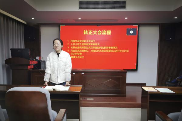 交通楼425举行了预备党员转正大会。会议由支部副书记周婧盈同志主持,支部全体成员参加本次会议。