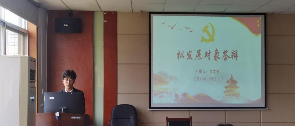 汇报结束后,支部同志根据各位候选人的汇报内容以及团支部的推荐情况,从党的理论知识、自身在经历中的成长与体验进行提问,并对候选人在汇报过程中的不足提出改正意见。支部党员同志鼓励各位候选人不断端正入党动机,加强理论知识学习,在学习生活和工作中以党员标准严格要求自己,不断向党组织靠拢。