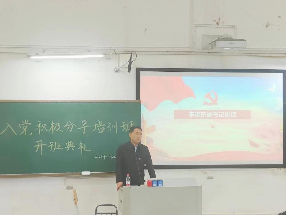 党委副书记宋晓东老师讲话。他首先对本期培训班顺利开班表示祝贺。而后,他对学员们提出了几点希冀:第一,珍惜党课学习机会,提高自己的政治素养,在党的二十大相关理论主题学习期间,切实通过党课学习,提高自身党性修养,与党的步调始终保持一致。第二,严格遵守纪律,端正学习态度,时刻以共产党员的要求严格要求自己。第三,知行合一,在实践中锻炼自己,努力学习先进榜样,争当表率,争做示范。最后,宋书记预祝本期培训班取得圆满成功。