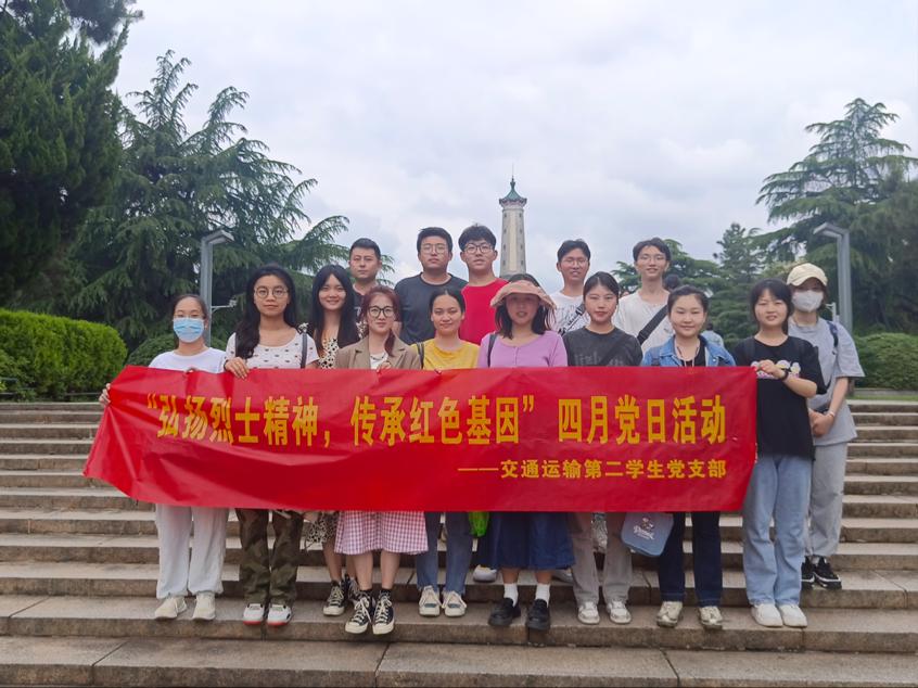 春暖花开、万物复苏的时节,交通运输第二学生党支部全体党员来到湖南省烈士公园南大门,甬道两侧龙柏苍劲蓊翠,穿过甬道,在巍峨的“湖南烈士纪念塔”下合影留念。