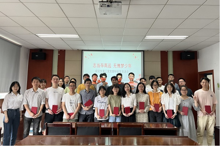 接收会事宜完毕后,由刘京同志组织举行毕业生党员欢送会。活动在轻松和谐的氛围中进行,刘京同志代表支部全体同志向毕业生党员表达祝福与祝愿,并向同志们发放纪念礼品。刘京同志强调,作为即将步入社会的毕业生党员,要肩负历史使命,坚定前进信心,立大志、明大德、成大才、担大任,努力成为堪当民族复兴重任的时代新人,让青春在为祖国、为民族、为人民、为人类的不懈奋斗中绽放绚丽之花。