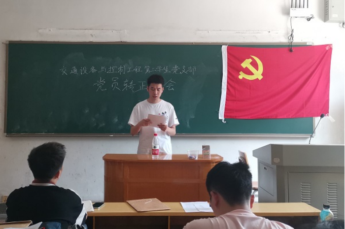 6月28日下午14:00,交通设备与控制工程第二学生党支部在世纪楼主楼201教室举行预备党员转正大会,讨论曾炜强、周伟贤、曾笑颜、江禄民、孔维武、马雨彤、吕鹏翔、覃若禹、王超泽九位同志的转正事宜。此次会议由江禄民同志主持。