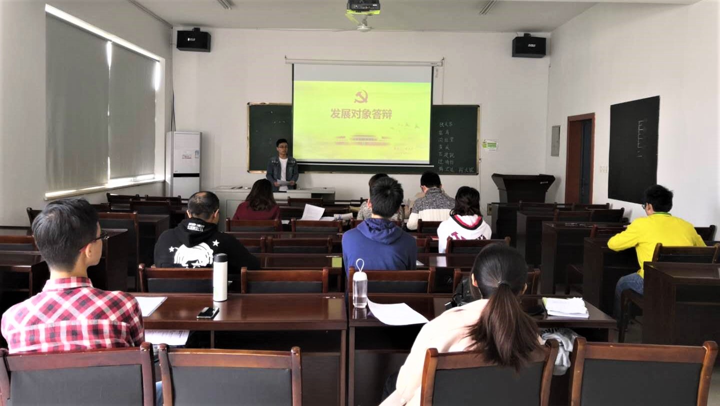 会议伊始,杨蕙瑜同志对于本次答辩会的流程进行了简单的介绍。随后,8位发展对象候选人依次上台做个人情况的陈述,陈述主要包括对党的认识、入党动机、理论学习、社会实践以及学习工作情况这五个方面。在每位候选人陈述完毕后,支部支委有针对性地对候选人进行了提问。