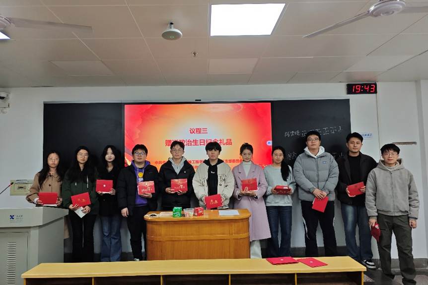 会议第三项议程,开展“同过政治生日,共忆入党初心”集体政治生日活动。支部书记胡奕宣读了本次“集体政治生日”党员名单,向过“政治生日”的党员送上贺卡及纪念礼品,传递党组织的关怀与期许,提醒大家时刻铭记入党初心,永葆党员本色。