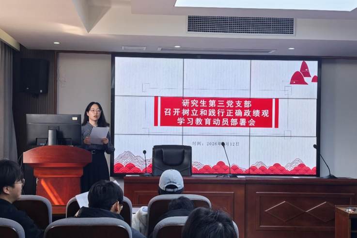 3月12日上午,研究生第三党支部在交通楼425会议室召开树立和践行正确政绩观学习教育动员部署会。会议由纪检委员李大宇主持,支部全体党员参加。