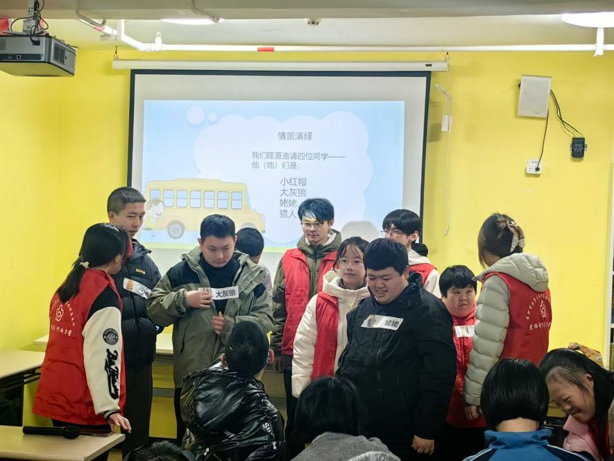 随后,志愿者以生动幽默的方式,为残障朋友们讲解绘本故事《狐狸奶奶的奇妙商店》和《小红帽》,用温柔的语言、形象的演绎带领大家走进童话世界。在互动环节,志愿者邀请残障学员共同参与故事演绎,大家积极配合、踊跃参与,在角色扮演中感受快乐、增进自信,现场笑声不断、暖意融融。