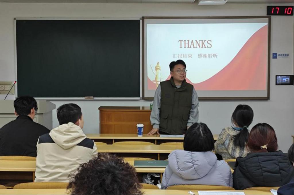 汇报环节结束后,蔡明旭老师作总结讲话。他肯定了参与同志的汇报表现,鼓励大家坚定入党初心,坚持理论学习与实践锻炼相结合,笃行实干,久久为功。同时,他对在场党员提出希望,强调要持续提升政治觉悟,发挥先锋模范作用,真正将党员标准内化于心、外化于行。