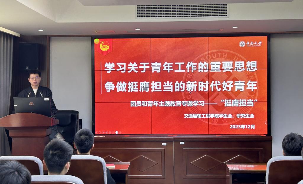 团委、学生会、研究生会于交通楼425召开以“学习关于青年工作的重要思想,争做挺膺担当的新时代好青年”为主题的“挺膺担当”专题学习会。本次学习由研究生会主席马捷主持,团委、学生会、研究生会全体骨干成员参会。