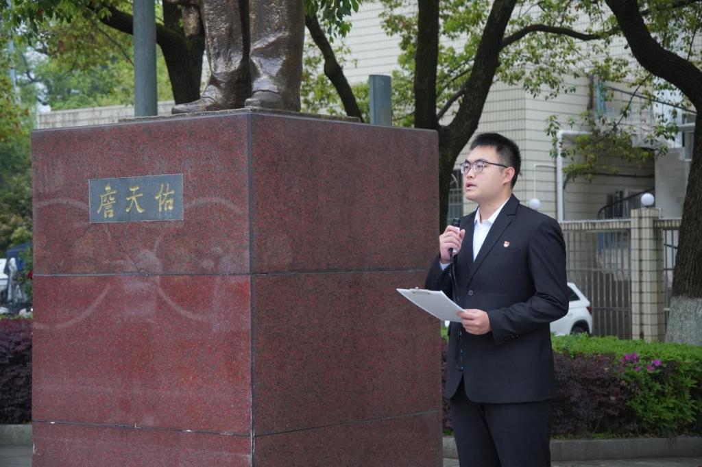 铁道校区詹天佑雕像前开展“缅怀铁路先辈,展望交通未来”缅怀先辈祭扫活动,旨在缅怀革命先烈,弘扬民族精神,加强爱国主义教育。团委书记张健、团委副书记郑繁简、交通设备与控制工程第三学生党支部书记王羽珊以及交通院国歌领唱团核心成员、交通院各党支部代表参与本次活动,活动由翁骏恺同志主持。