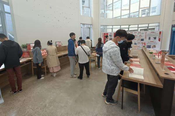 竞赛结束后,活动进入到自主参观学习环节。全体团员或翻阅《习近平谈治国理政》系列书籍,深刻感悟领袖的人民情怀;或欣赏“学习二十大精神”系列的书法作品和优秀文章,体会新时代中国特色社会主义文化的自信自强;或是浏览党的二十大报告的思维导图、观看二十大的相关学习视频,进一步巩固学习到的知识。