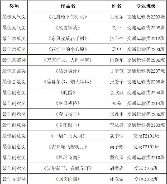 纷纷冬雪呈祥瑞,声声祝福迎新春。新春佳节之际,为鼓励同学们深切感受家乡年味,共享祖国各地风土人情,充实同学们的假期生活,2023年1月15日至2月8日,交通院大学生朋辈心理互助会举办了“岁寒有美,新春呈祥”心灵捕手摄影活动,通过线上收集与投票的方式选拔出优秀摄影作品。