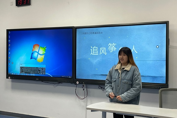 会议伊始,交运2101班文体委员李栗组织了你划我猜、起立抢答的暖场小游戏,拉进联合班级同学距离。随后,交运2101班沈子力同学与交运2102班江百川同学先后分享了《追风筝的人》《平凡的世界》两部经典书籍。两位同学从作者与写作背景出发,分享了各自在阅读过程中的感受,引发同学们的思考。其中沈子力同学介绍了“风筝”这一词在书中的隐喻意义,其暗示主人公在历经各种挫折后,凭借自身的不懈努力与内心的坦诚,最终获得成长的过程。江百川同学谈到,《平凡的世界》就如其书名,讲述的是平凡人的生活,人生可能就是如此猝不及防,但要努力“在认清生活的本质后,仍然热爱生活”。