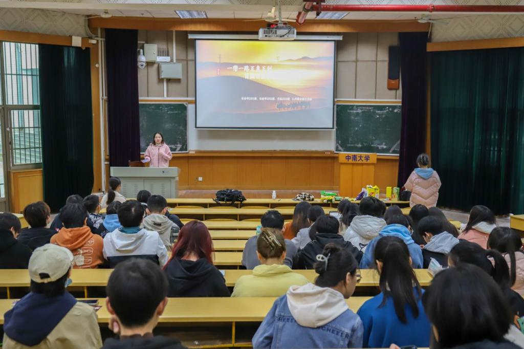 接着,朱芷珊组织同学们进行“你画我猜”“特产溯源”等小游戏。在“你画我猜”中,高铁、丝绸等与“一带一路”有关的词语被同学们描绘出来,欢声笑语中,同学们对“一带一路”的陌生感逐渐消弭。在“特产溯源”中,主持人展示“一带一路”沿线国家的零食,引导同学们猜出其产地。同学们的踊跃发言将班会气氛推向高潮,与会同学在寓教于乐的小游戏中了解到“一带一路”的相关知识。