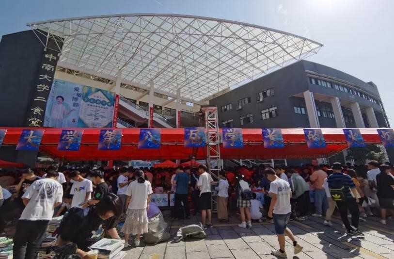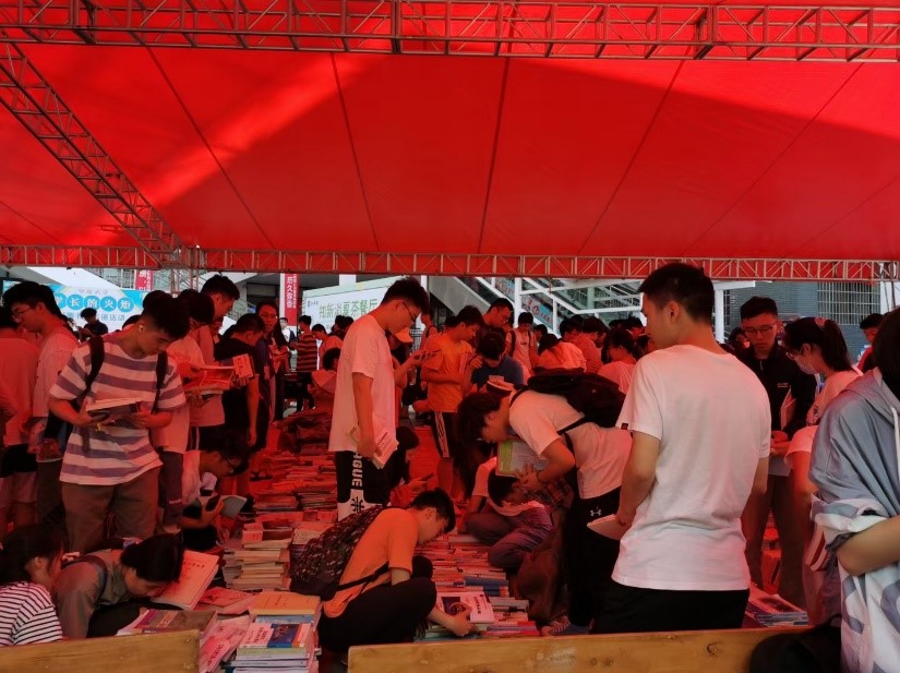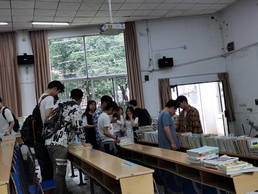 也在二食堂前坪举办第二次爱心书籍传递活动,学工办助理团队和勤助中心的工作人员们一直坚守在现场维持秩序,耐心地为前来领取书籍的同学们答疑解惑。学弟学妹们踊跃参加,领走了他们需要的书籍和参考资料,大家纷纷对这次活动表示好评:“这个活动对我很有帮助,既可以节省一些购买书籍的费用,还可以从这些书中获得知识经验,提高学习效率”。