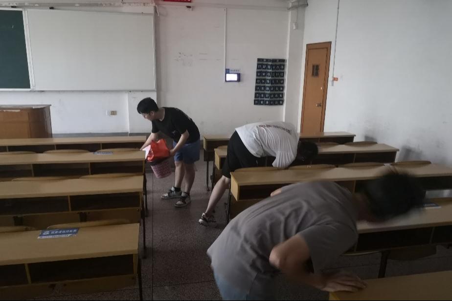 第三小组在郭智同志的带领下来到世纪楼,完成了二至四楼的垃圾清扫志愿服务。同志们对每个座位的抽屉和地面都进行了垃圾清理检查,并且在无人的空教室关灯关空调。尽管天气炎热,但是大家的积极性非常高,在清理教室的过程中清理出了许多垃圾,为楼管阿姨减少了工作量。这次活动让同志们深切体会到了楼管阿姨日复一日为同学们清扫教室的辛苦,同志们也对自觉维护公共环境卫生产生了责任感与使命感。