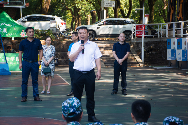 党委书记贺志军、院长高广军等院领导以及全体辅导员老师来到南校区篮球场,亲切慰问2021级军训教官及参训新生。