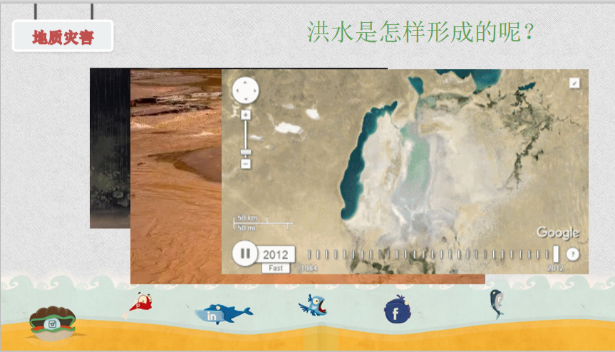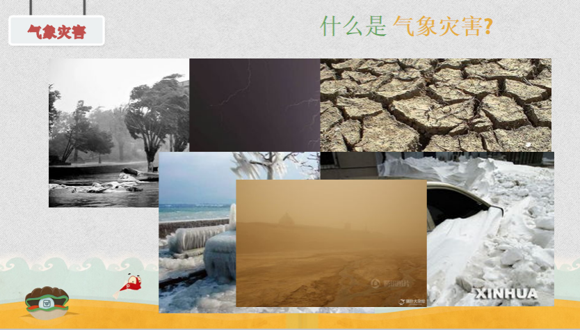 首先,赵老师通过一个简单的小视频介绍了几种常见的自然灾害,让孩子们对自然灾害有了一个直观的认知。接着,赵老师带领着大家从地质灾害、气象灾害、海洋灾害、生态环境灾害四个方面,认识了生活中常见的自然灾害。其中,地质灾害是本次学习的重点内容,赵老师向大家介绍了滑坡、泥石流、洪水和地震等几个常见灾害的成因,并通过动画辅助讲解,便于低年级的同学理解。