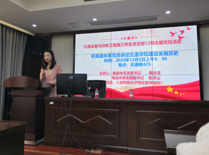 2020年12月5日上午九点,交通设备与控制工程第三学生党支部在交通楼425举行了12月党日活动,活动主题为“坚守初心,争做先锋——听离退休老党员讲述铁道必威