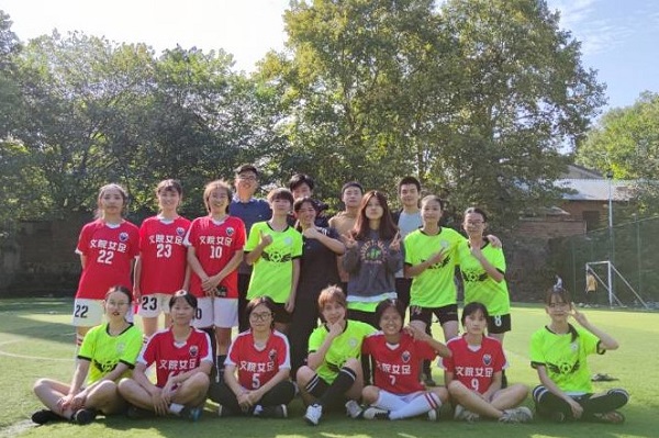 的足球比赛中她与队友们默契配合,为必威