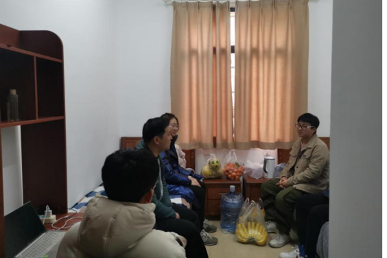 党委副书记宋晓东及辅导员张佳琪,进入留校学生公寓看望因疫情原因寒假留校学生,并送上慰问品。