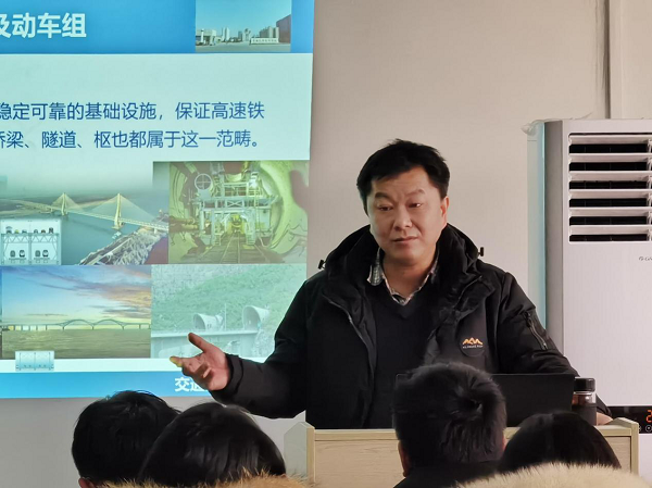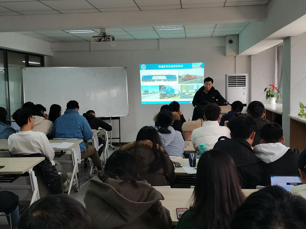 课程伊始,李蔚教授结合自身科研与实践经历,向同学们分享了我国高速列车及动车组、机车、重载列车、地铁及城市轨道交通车辆目前的研究成果和研究方向。李蔚教授重点介绍了我国高速列车及动车组取得的巨大成就和中国高速铁路技术体系,并详细阐述了我国自发研制的重载列车与其他国家相比所具备的优势。最后,他还针对悬浮列车和和谐系列交流传动机车领域提出了如何降低运行成本,提高能源利用率等问题。