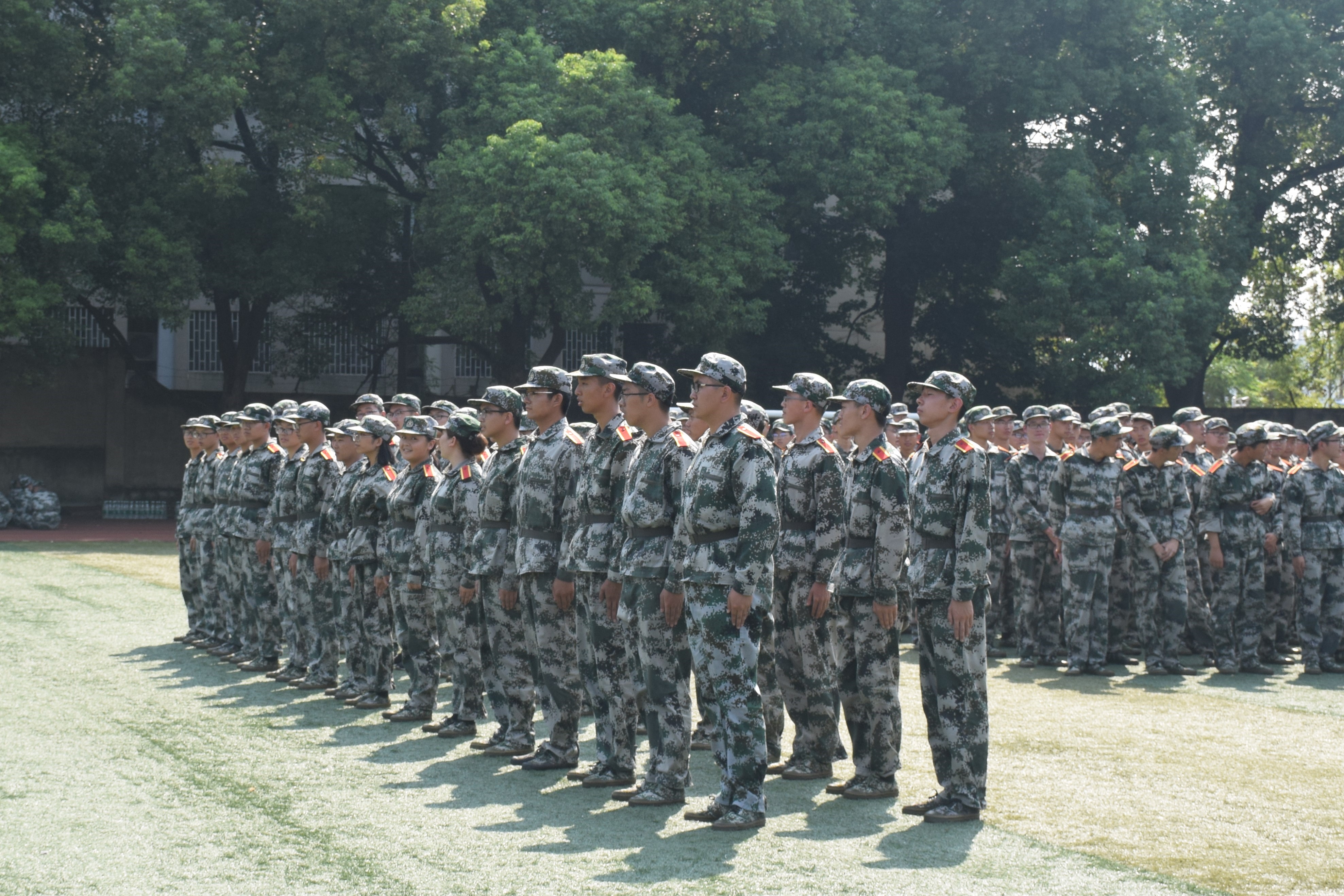 下午一天的军训快要接近尾声,我们也丝毫不松懈。即使在解散后也迈着整齐统一的步伐前往食堂就餐,在排队的过程中仍然井然有序,昂首挺胸,只因此刻我们每个人都是军队的一份子,代表着我们排和我们连。团结就是力量,只要我们每个人都拥有强烈的集体荣誉感,就更能彰显我们的绿营情怀。