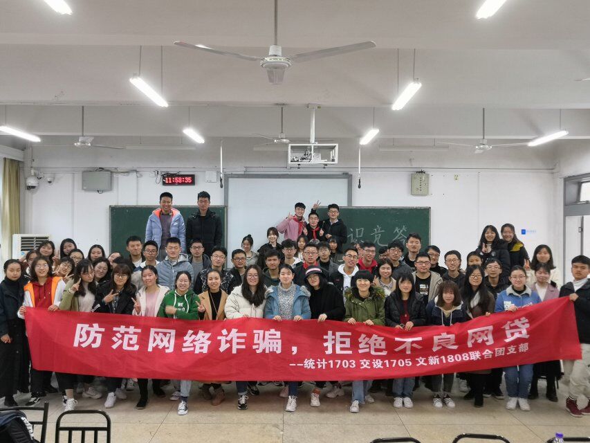 3月9日上午9点40分,统计1703班、交设1705班与文院1808班联合班级于新校区A座310教室开展“防范网络诈骗,拒绝不良网贷”主题团日活动。本次活动通过向同学们展示一些事例,使大家了解到当今网络的多元化和复杂性,从而督促同学们及时树立个人信息的安全意识,在不良信息和诱惑面前能够坚定地说“不”。