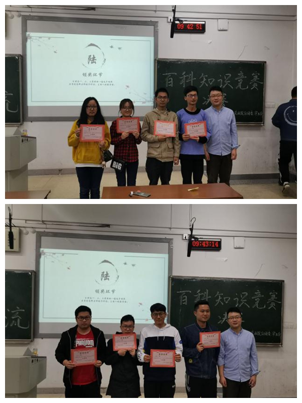 的学风建设、知识文明建设具有重要意义。此次知识竞赛题型丰富多样,涵盖了天文地理、时政热点、历史文化等多个方面,意在考察同学们的综合知识储备能力,不但使同学们掌握了知识,更让同学们学会了如何运用知识,引导同学们关注社会热点,希望同学们能够在日常生活中领悟“博学之,审问之,慎思之,明辨之,笃行之”的真正内涵,在这些过程中充实和激励自我,最终在德智体美劳各方面全面发展。