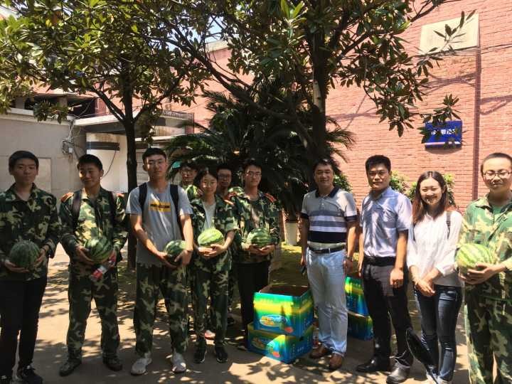 七月的长沙闷热异常,空气胶着着吹不起一丝风。为了了解同学们的实习情况和看望同学们,老师们带着西瓜来到车间现场并将西瓜分发给各个班级的班长,叮嘱他们一定要保障所有同学们都可以吃上西瓜。