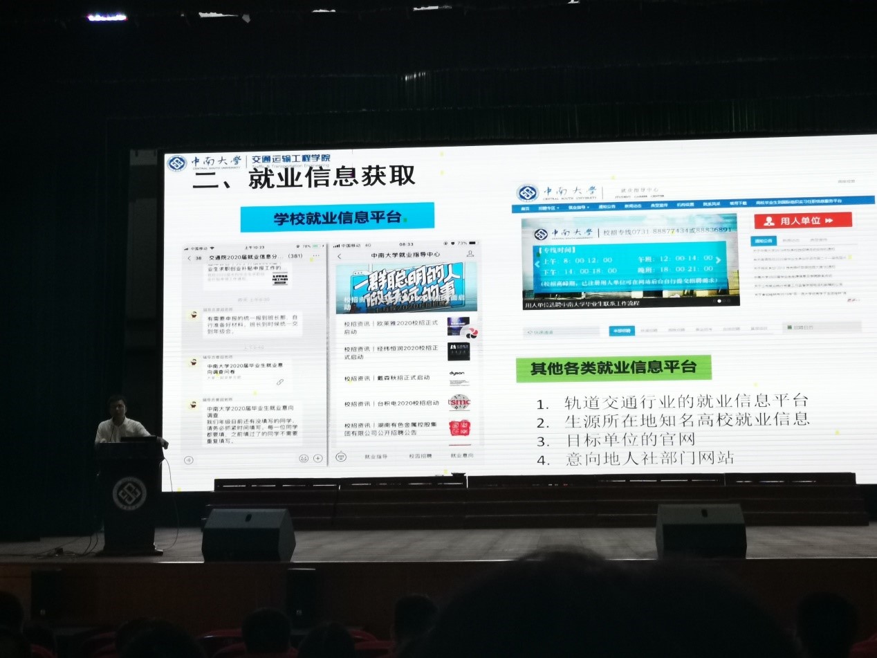 会议第一阶段,曹超老师从四个方面对16级学生们提出了一些建议。正值毕业招聘季,他首先提醒了全体学生要注意求职陷阱,不仅要了解招聘单位的资质,更要保护自身权益不受侵害;其次,他督促大家要规划好大四的学习生活,要有毅力,更要有定力。曹超老师不仅给大家画出了七个关键词“现实、收获、失败、尝试、感恩、成熟、落幕”,更是暖心地告诉大家:“时时刻刻记住你不是一个人,永远有交通院这个大家庭做坚实后盾。坚守本科最后一年,顺顺利利毕业。”