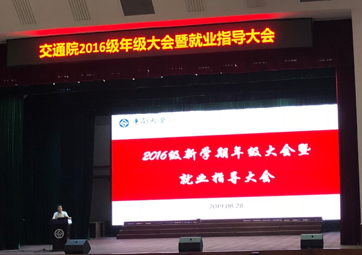 交通院16级年级大会暨就业指导大会于8月28日下午3点在铁道大礼堂顺利召开,交通院党委副书记宋晓东、16级辅导员曹超老师出席了本次大会。