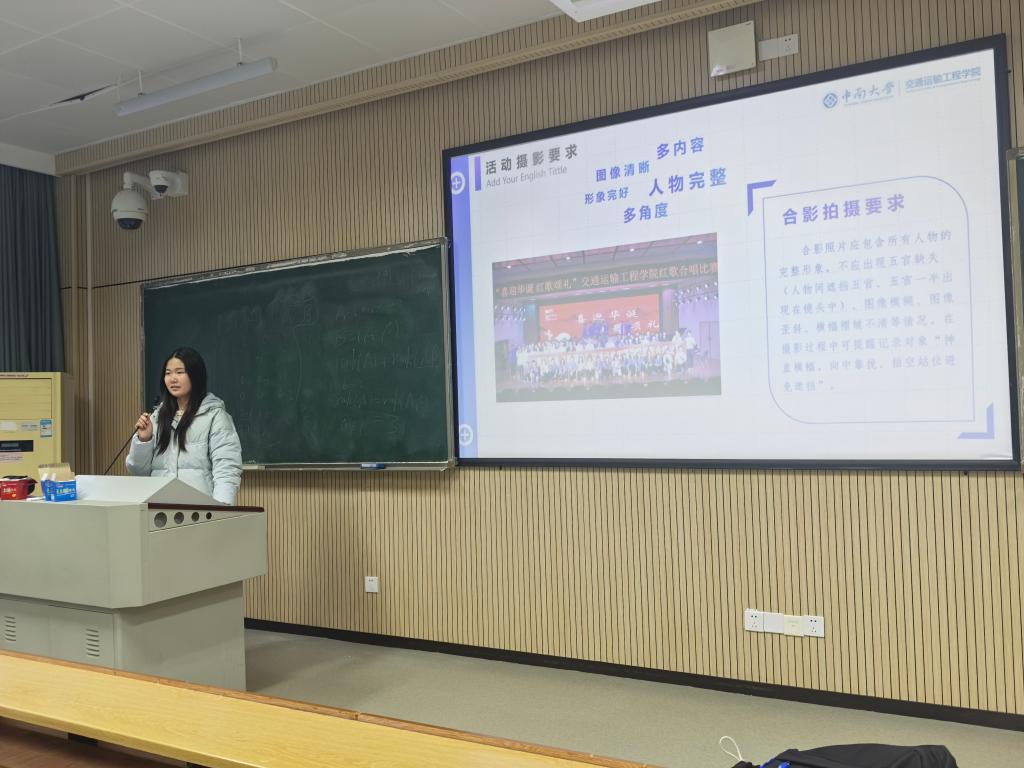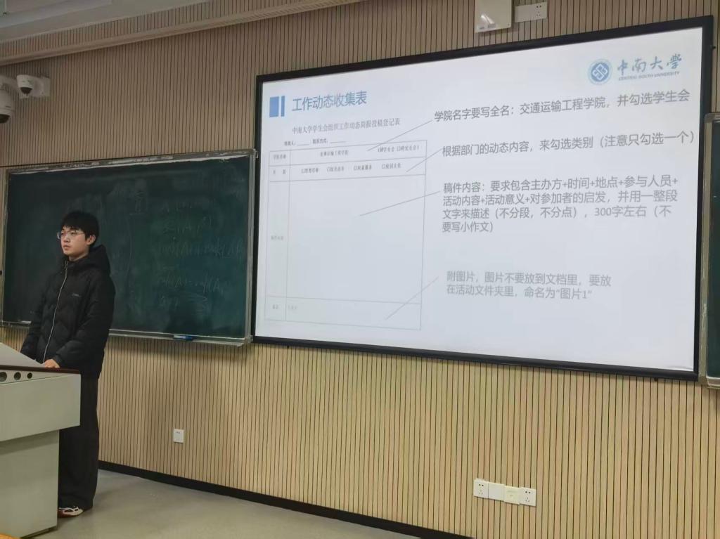 会议最后,院学生会办公室成员围绕经费报销、工作动态填报等事项开展规范讲解;宣传部成员就新闻稿撰写、活动摄影技巧及公众号推送制作等内容进行专题培训。