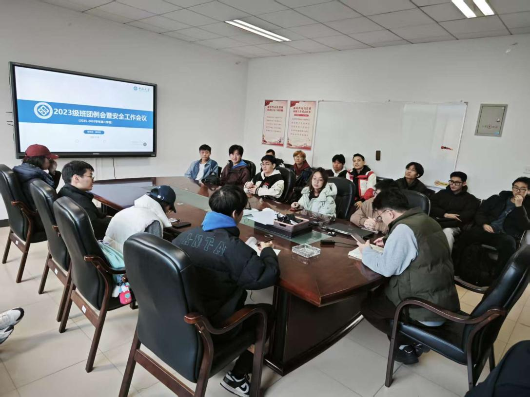 2023级于近日组织召开班团干部工作例会。会议紧密围绕安全教育、学习纪律、班级建设三大核心板块进行深入研讨与部署。辅导员蔡明旭主持会议,全体班长、团支部书记参会。