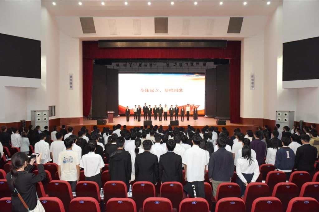 会议伊始,全体起立,由国歌领唱团带领与会人员,合唱国歌。
