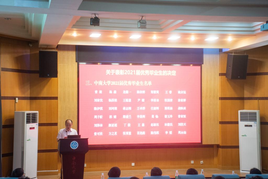 随后,副院长刘辉教授宣读《关于表彰2021届优秀毕业生的决定》以及表彰名单:副院长韩锟宣读《关于聘任郑繁简等同学为必威