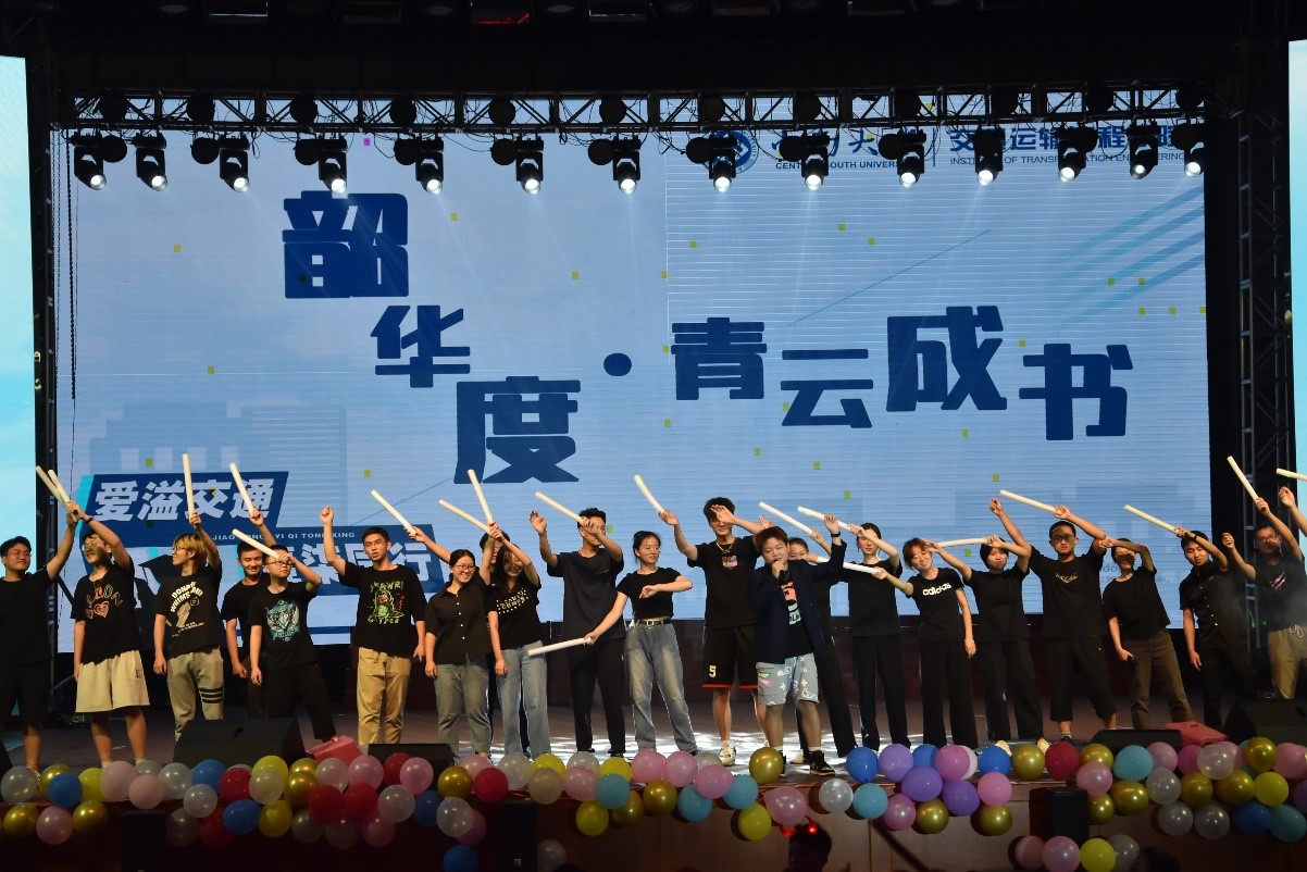 第一篇章落幕后,交通院的老师们通过大屏幕对2021届毕业生们送上了衷心祝福。随后交运1706班的《青春舞步》通过欢快的舞步和动感的音乐,演绎出了一场轰轰烈烈的大学恋爱故事。交运1704班带来的小品剧《一生有你》回忆了四年大学生活的点滴。随后,高手云集的双截棍社团表演的《棍舞中南》,将整场晚会的气氛推向高潮。